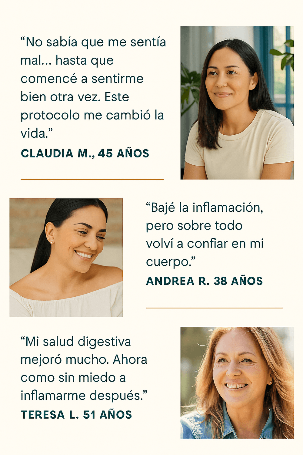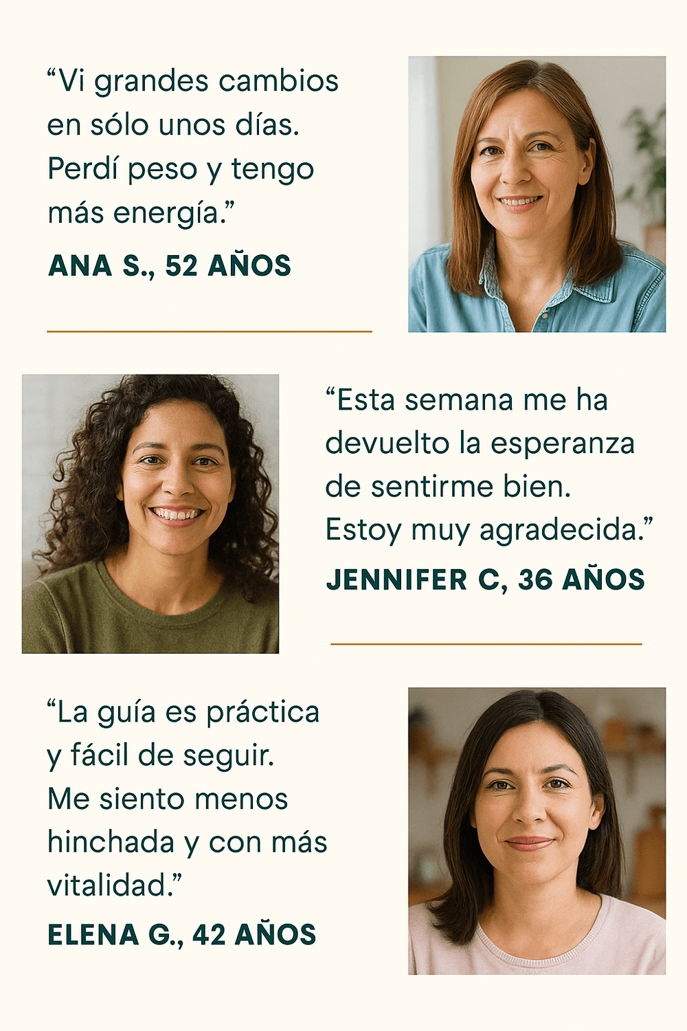 La mayoría de las lectoras empiezan a sentir más energía y menos inflamación en los primeros 3 a 5 días. Sin embargo, cada cuerpo es diferente; por eso este plan está diseñado para generar mejoras rápidas y sostenibles.